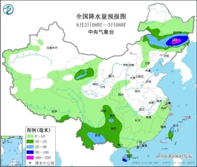 中央氣象臺預計,8月1日夜間開始至4日,內蒙古東部、東北地區多陣雨或雷陣雨天氣,其中內蒙古東北部、吉林中東部、黑龍江東南部等地部分地區有大到暴雨,局地有大暴雨;上述部分地區伴有短時強降水,局地將有雷暴大風或冰雹天氣。